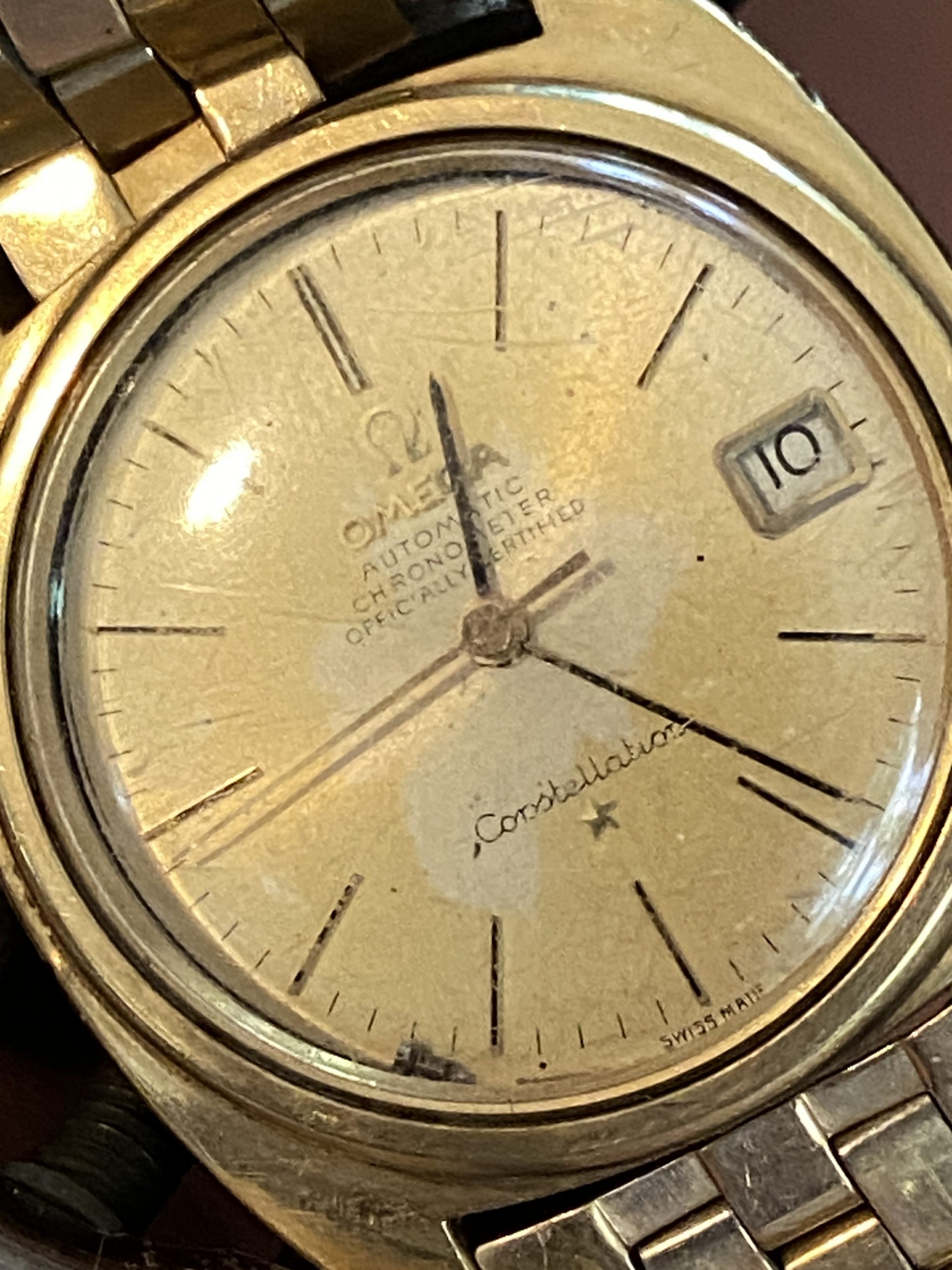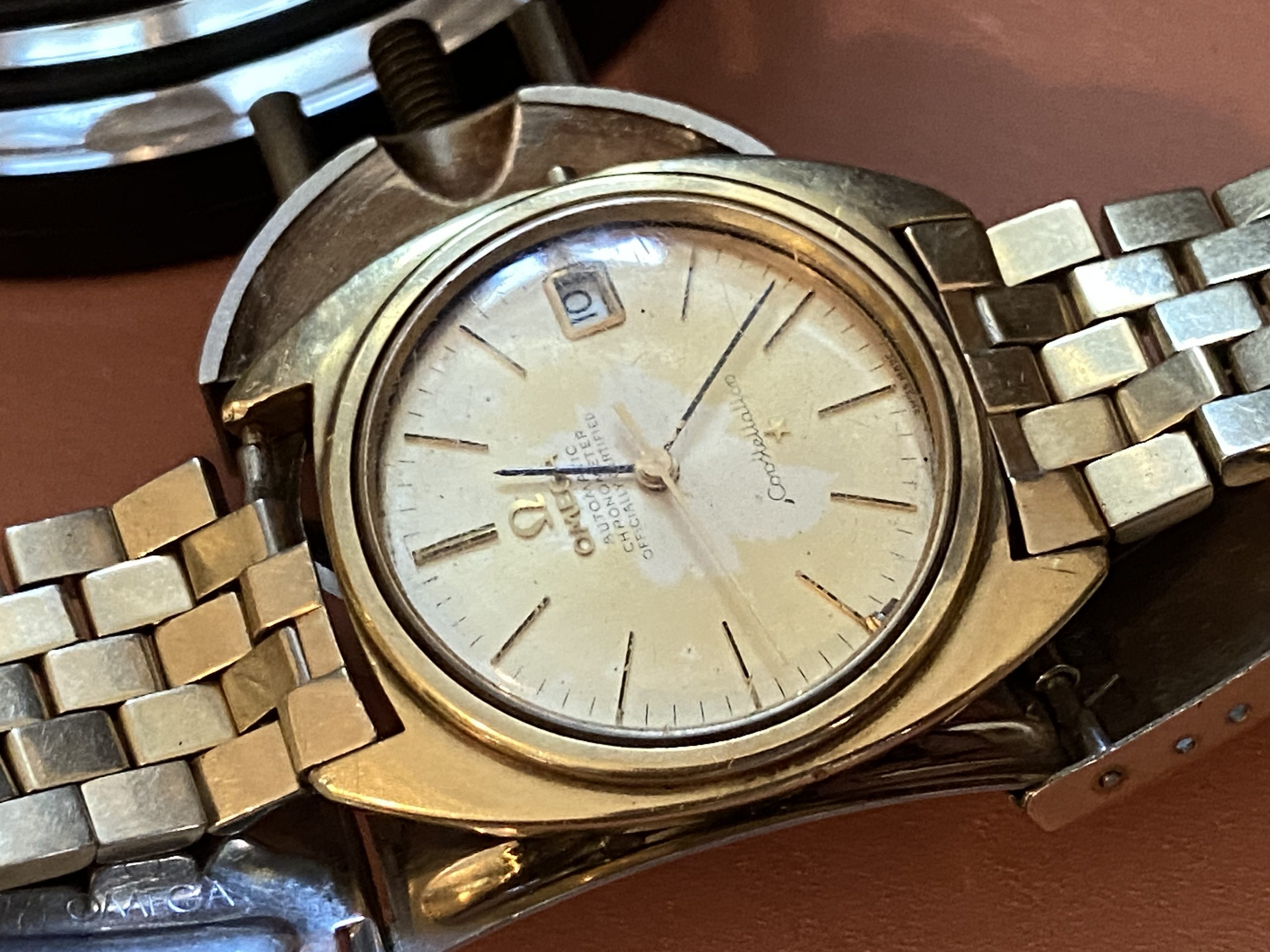 Omega constellation Automatic Chronometer Cal 564. Nice project here with some wxtra movement parts. The case is gold cap, nice crystal.