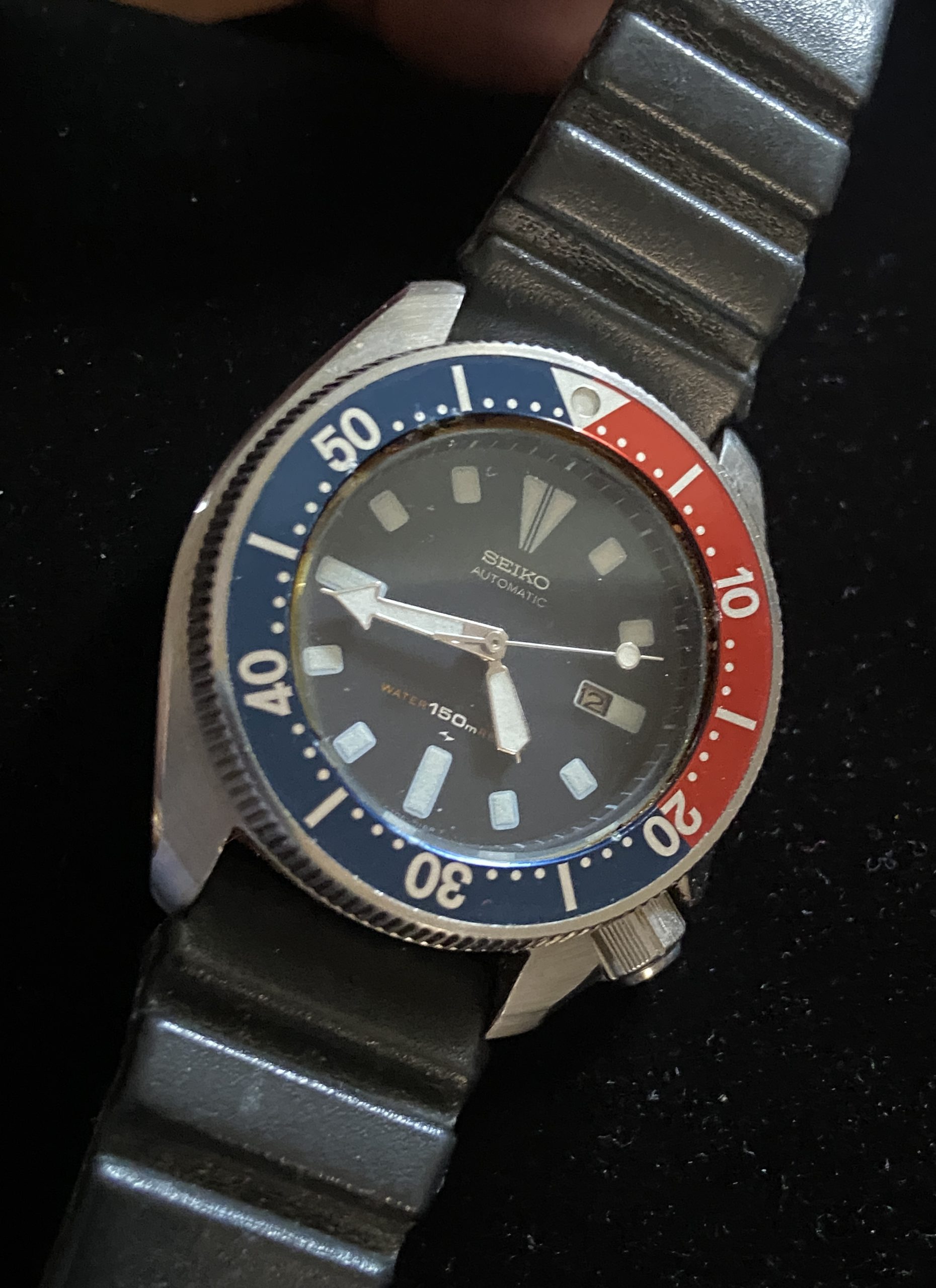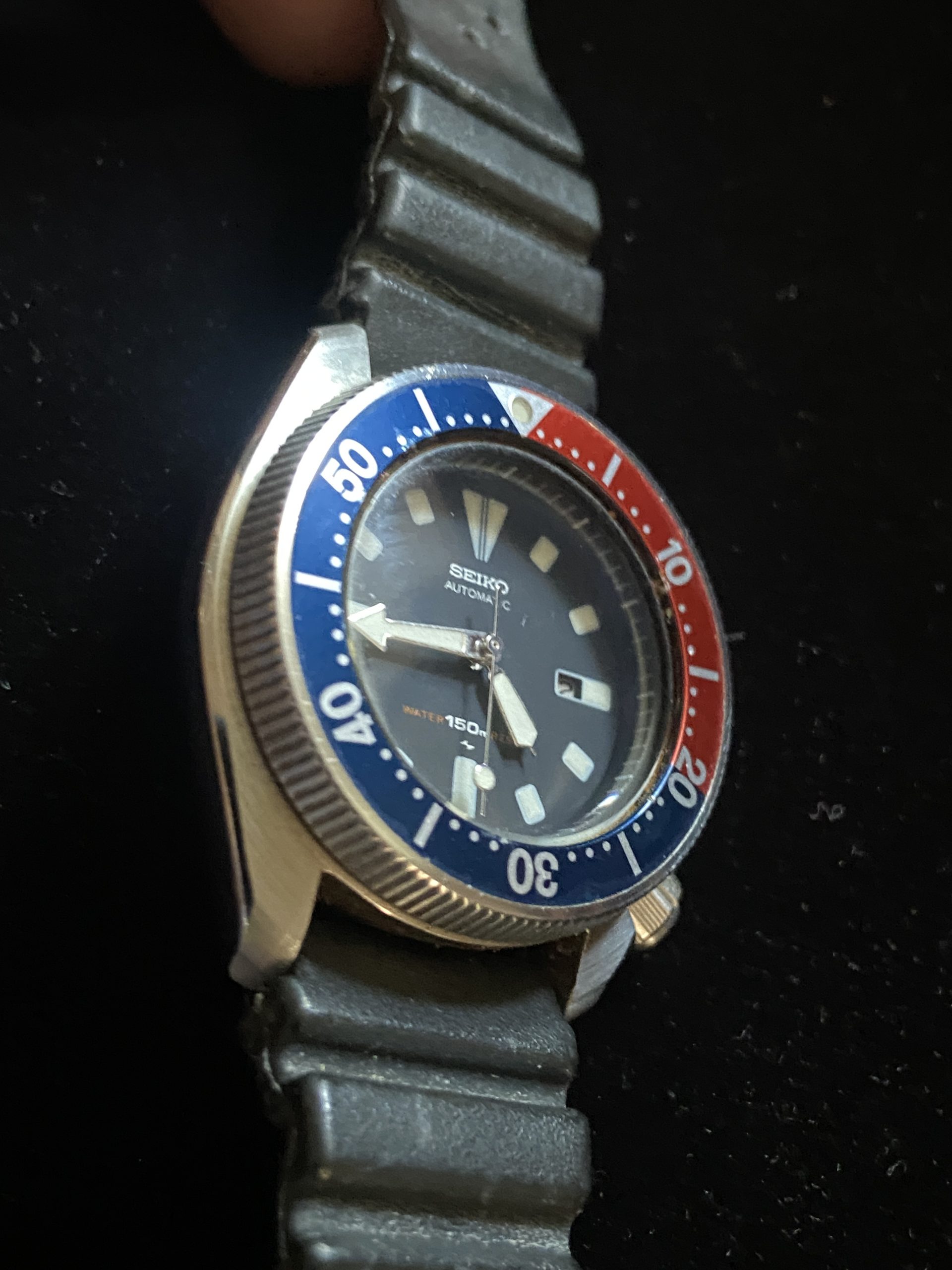 Ladies Seiko 4205-0145 Pepsi automatic Diver 33mm. This watch still has the original japan band and functions as it should. Back in the day mens vintage watche size was was 34mm and 36mm