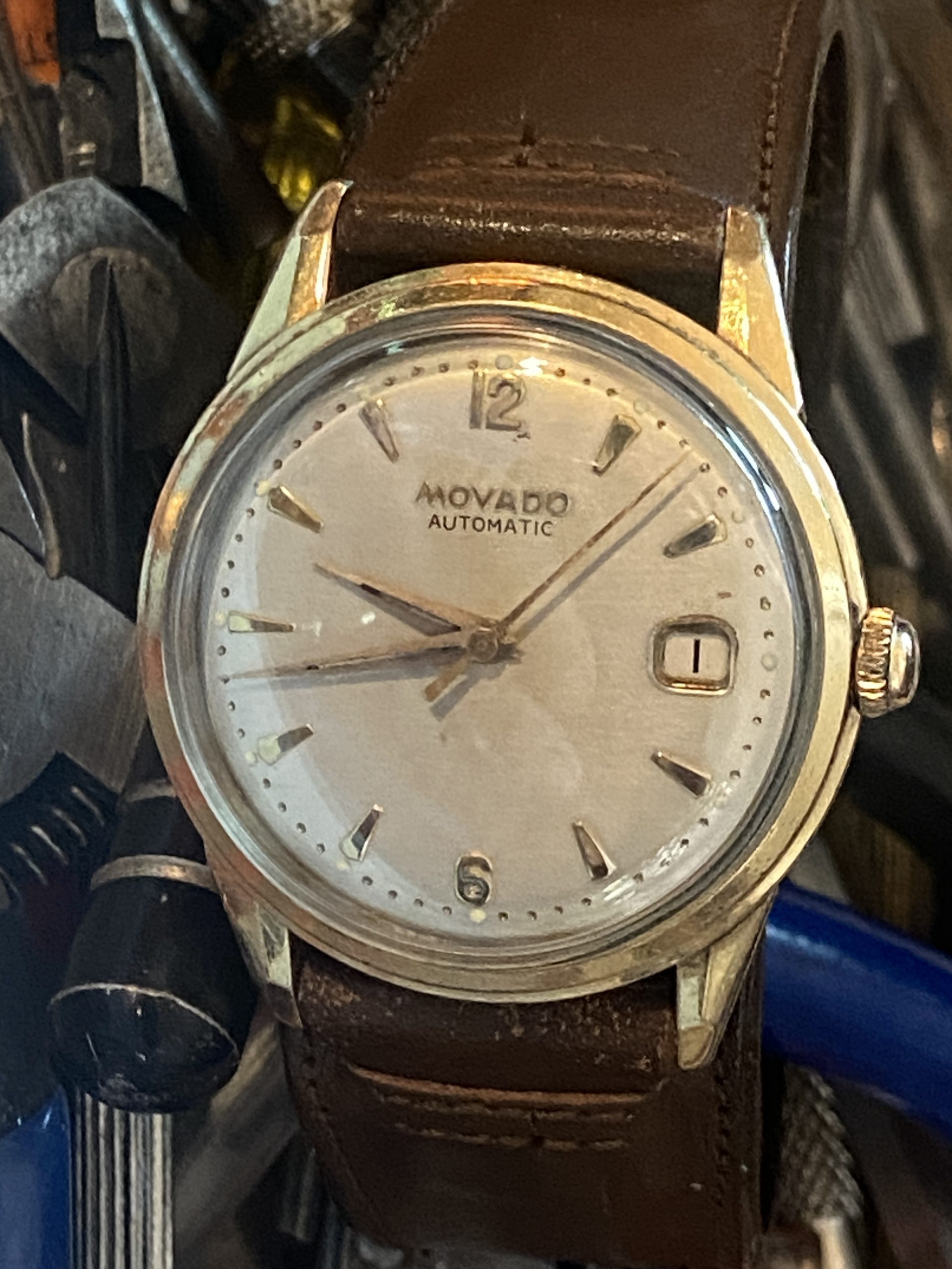 Collecting Movado vintage watches has become a prominent hobby among enthusiasts who appreciate the brand’s rich heritage and innovative designs. The intricate craftsmanship and timeless aesthetics of these timepieces captivate collectors around the world. Overall this is a nice looking vinytage timepiece with a leather cuff band and a date window. A very confortable wear on the wrist. easy 7 1/4″ fit