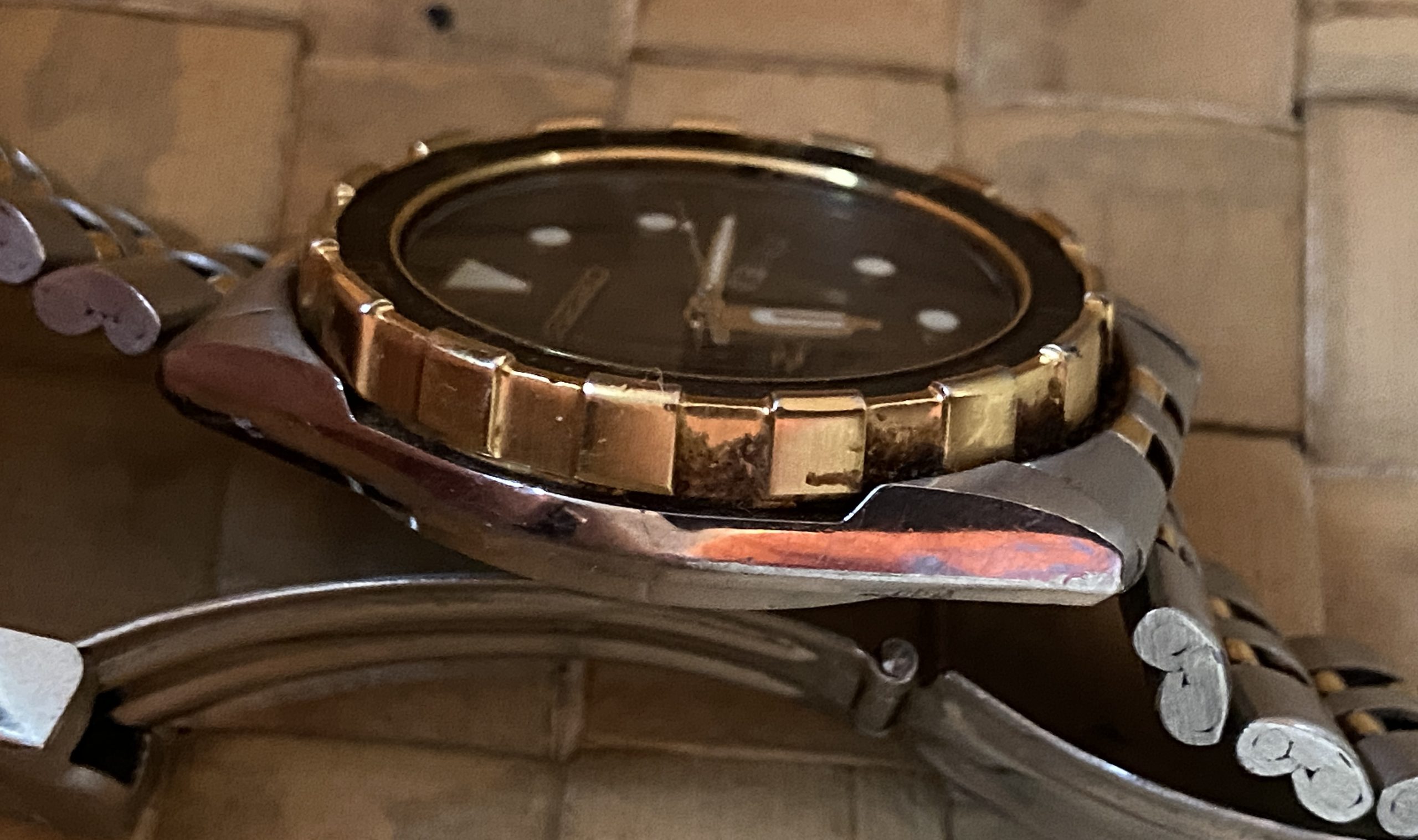 The Seiko SQ Sports 150 Diver 5H23-7019 Quartz Watch is a vintage timepiece manufactured between 1980-1989 in Japan. This classic diver’s watch features a gold and black bezel with a tri-fold clasp closure. The stainless steel case and bracelet band add to its durability and stylish design. With a water resistance of 150m (15 ATM) and a quartz movement. Fits a 7 1/4″ wrist with new battery installed.